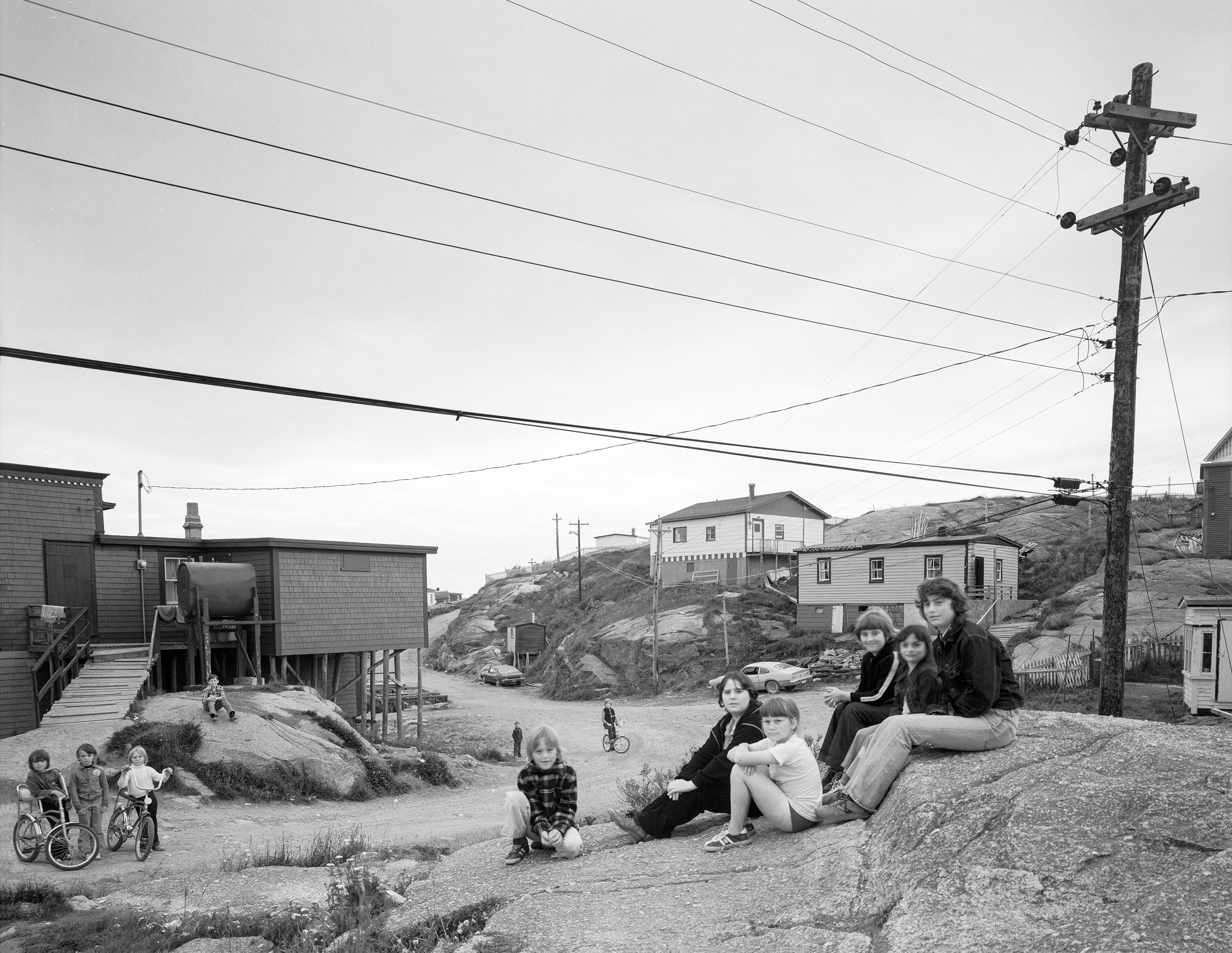 From 1976 through 1980 I traveled by coastal steamer and on rutted roads to fishing villages along the Newfoundland and Laborador coasts. With the depletion of the Atlantic northwest cod fishery, the Canadian government began a moratory on fishing and sought to relocate inhabitants to the mainland. With men at work in their boats and women in the houses, village children spent their idle summer hours congregating on the rocky shore, unaware of the impending and unending changes to their way of life.